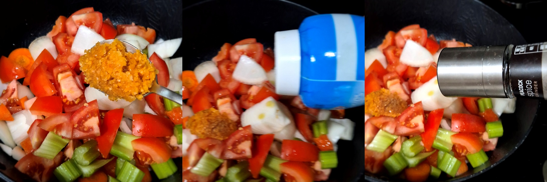 그리고 마늘 1큰술 소금 톡톡 후추 톡톡 넣어주고 중강불로 섞어주면서 볶아주세요.