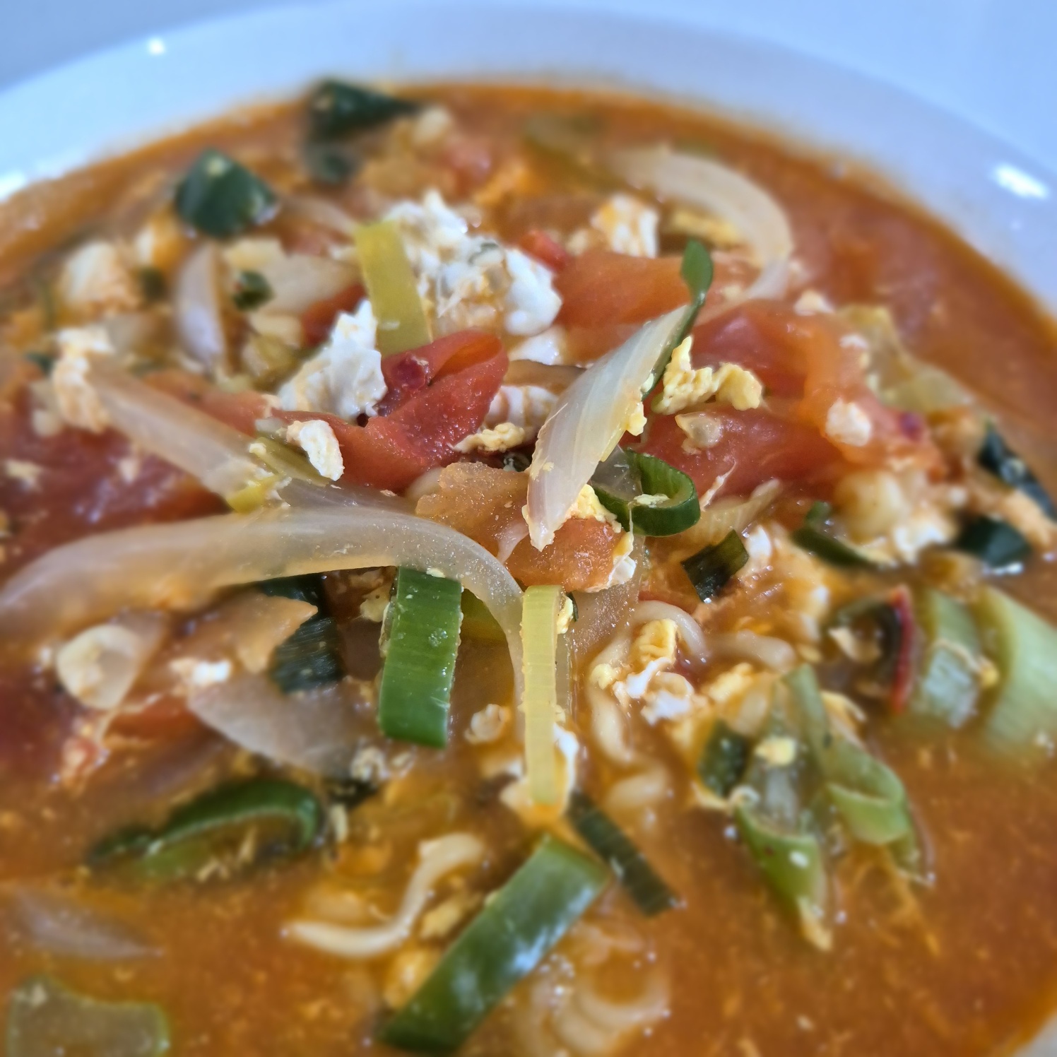 매콤 새콤한 느낌의 라면 확실히 그냥 먹는 라면보다 맛있고 시원하면서 위에 고수를 추가해 준다면 홍콩식 토마토라면이 된답니다.