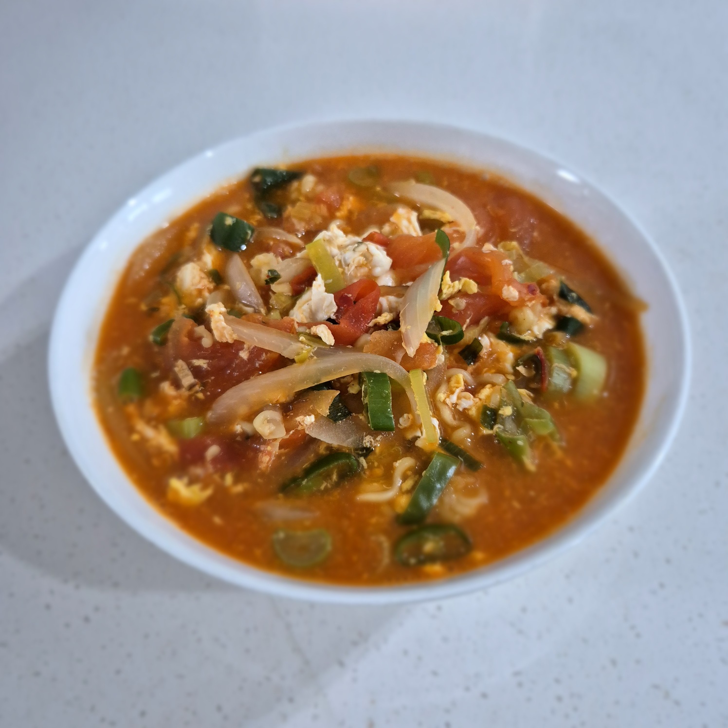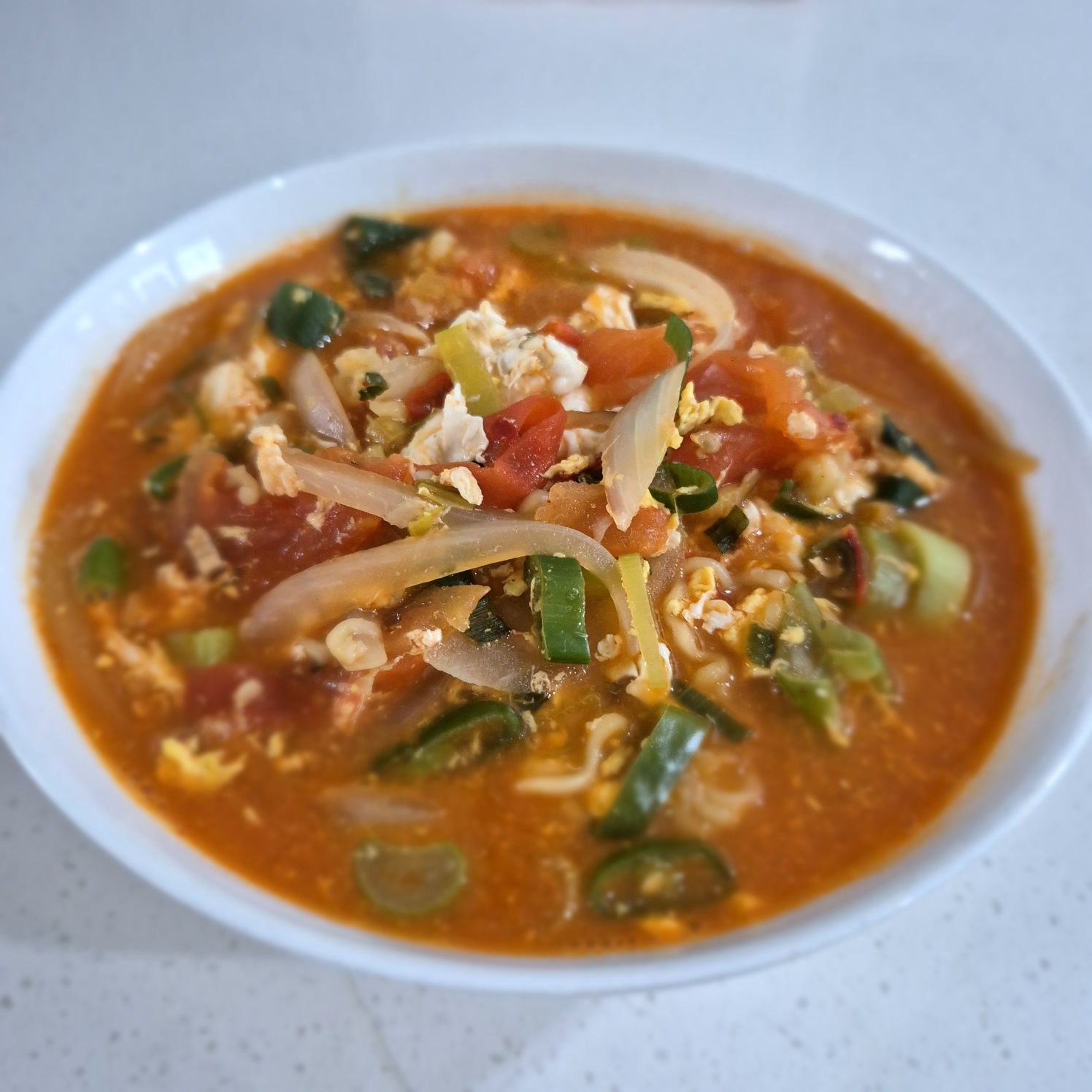 일반 라면보다 시원하면서 해장까지 되는 토마토라면 끓였어요.
