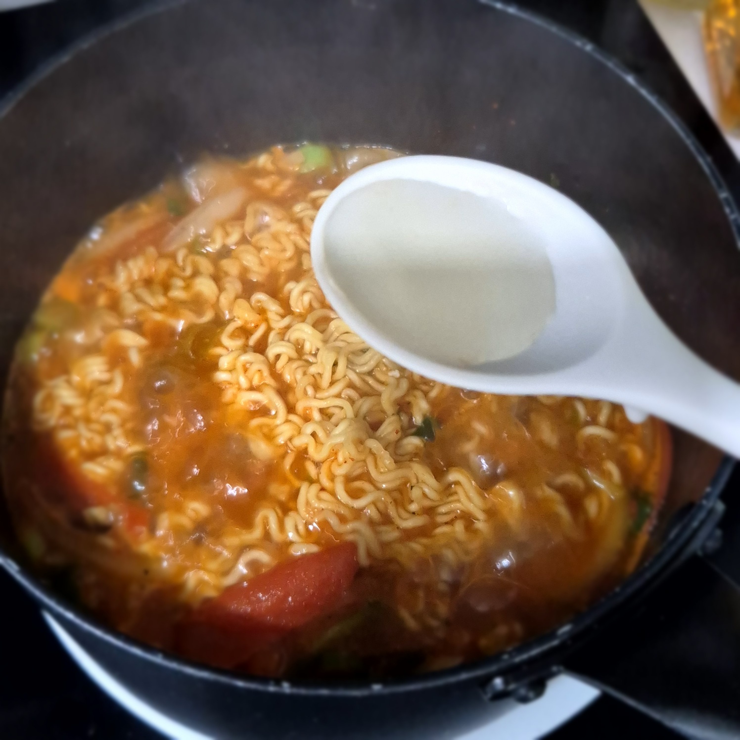 마지막에 넣는 식초는 맛을 업그레이드해 주면서 혈당을 많이 오르지 않게 해 준다니 라면끓일때는 무조건 식초는 킥입니다.