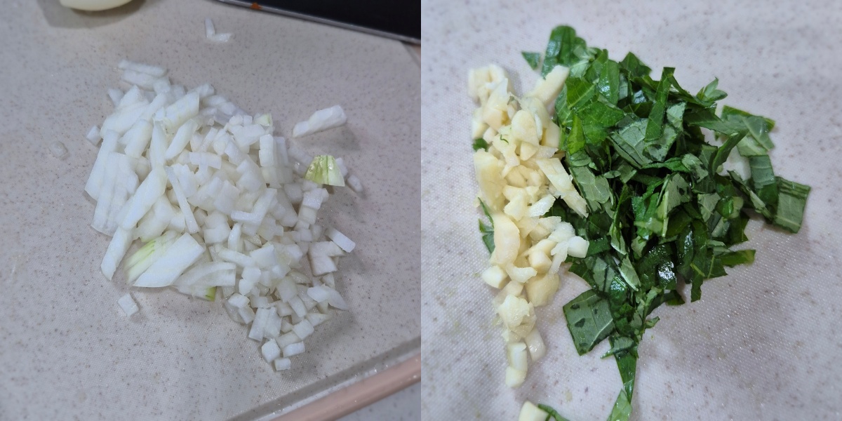 양파와 깻잎, 마늘은 잘게 잘라줍니다.