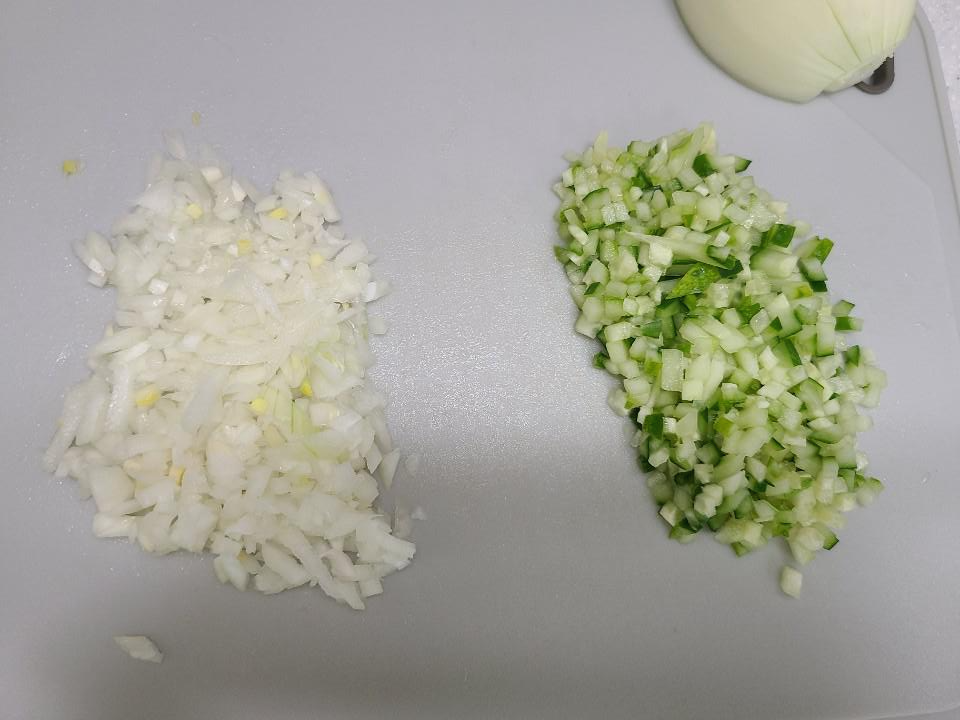 1. 양파와 오이는 잘게 썰어 준비합니다.