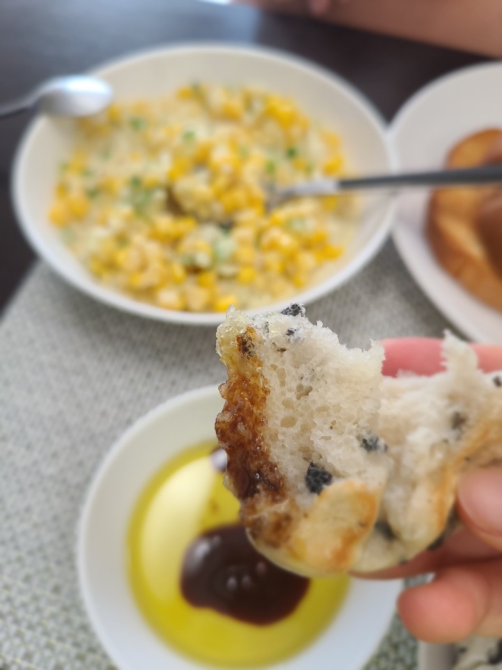 올리브 오일과 발사믹 식초에 찍어 먹으니