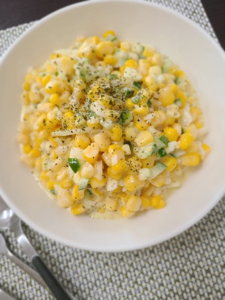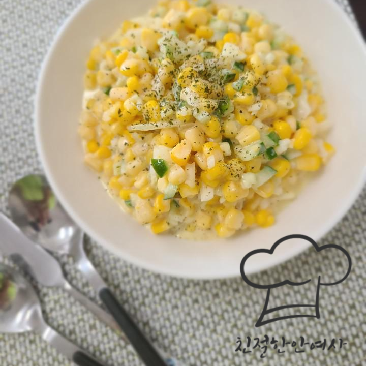 같이 먹을 콘샐러드를 만들어 보았습니다.