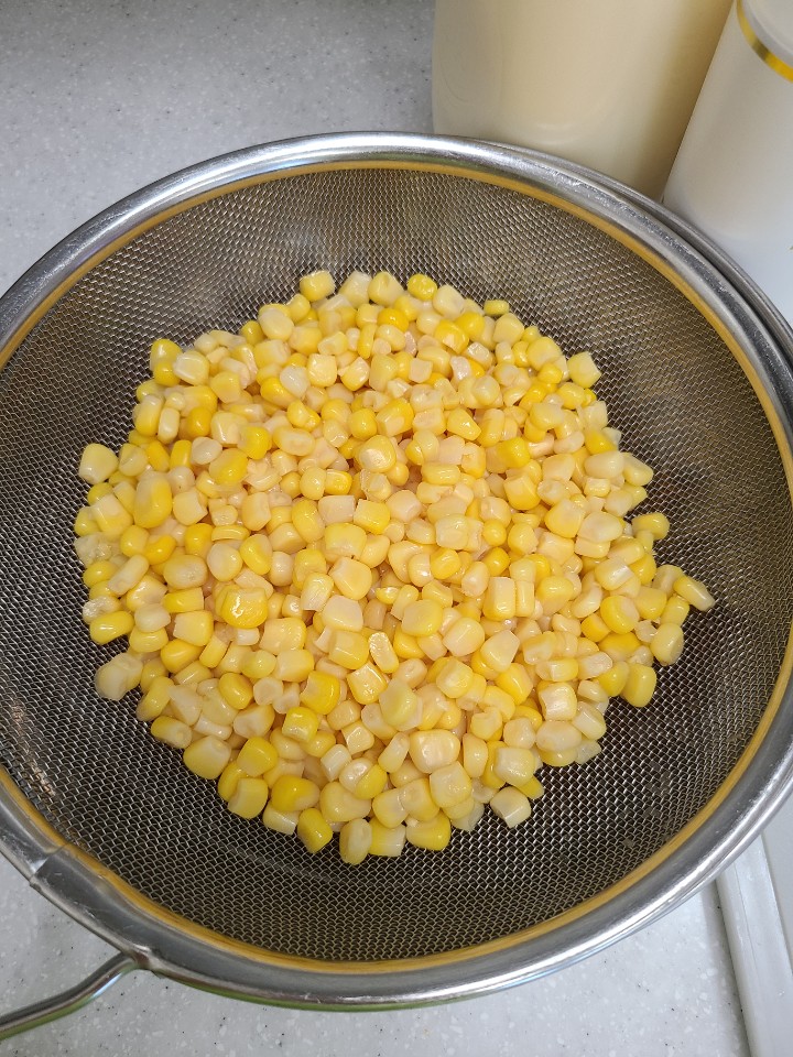 2. 스위트콘은 체에 받쳐 물기를 빼줍니다.
