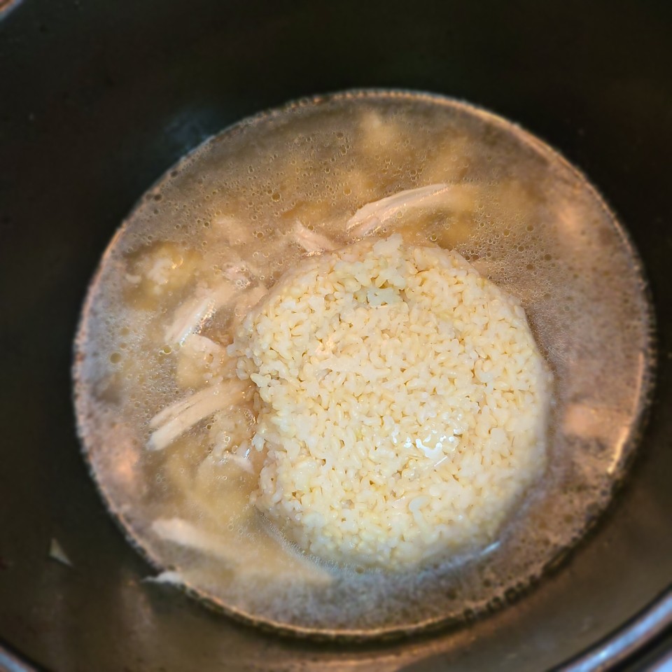 현미밥을 넣어 주고 작은 불로 끓여줍니다.