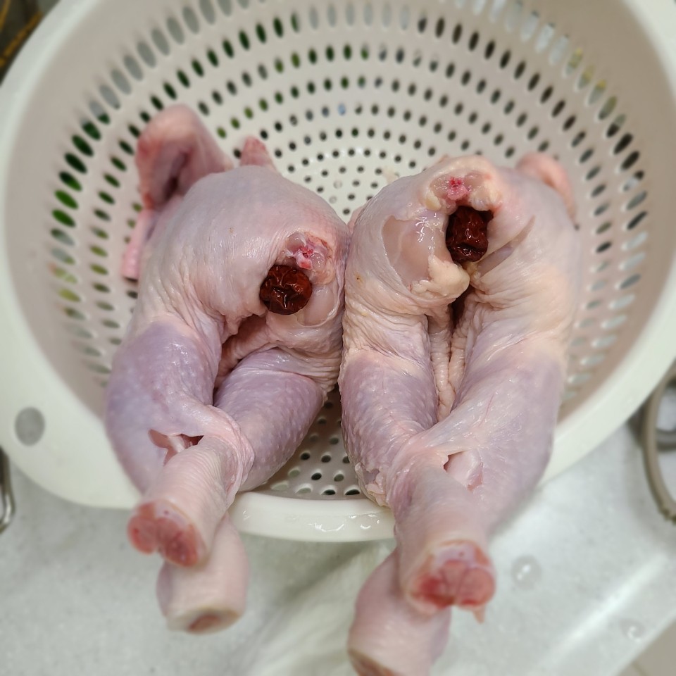 4. 삼계탕 재료는 한번씩 물에 씻어줍니다.