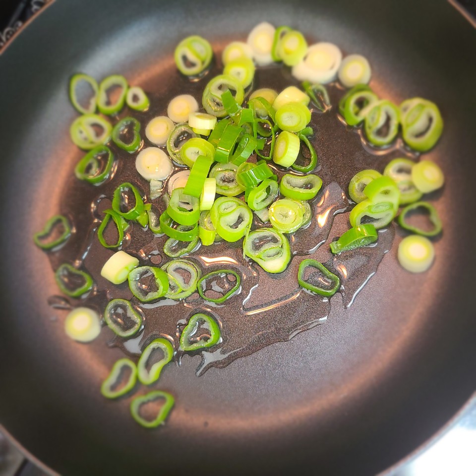 기름을 두르고 대파를 송송 썰어 넣어줍니다.