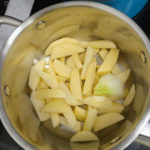 1. 감자 , 양파는 1cm 두깨로 굵게 채 썰어 준비합니다.