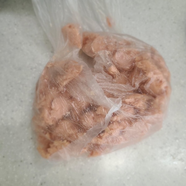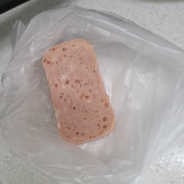 2. 스팸은 밀폐 봉지에 넣어 잘게 으깨어 줍니다.