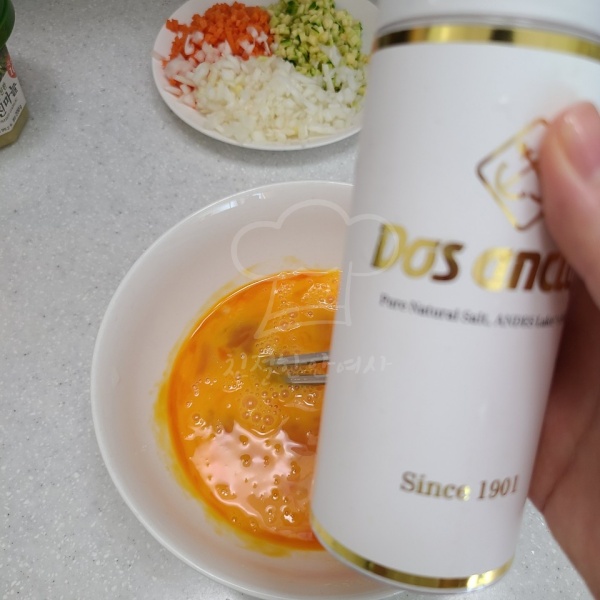 달걀을 풀어주고 소금으로 간을 합니다.