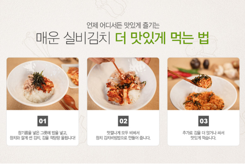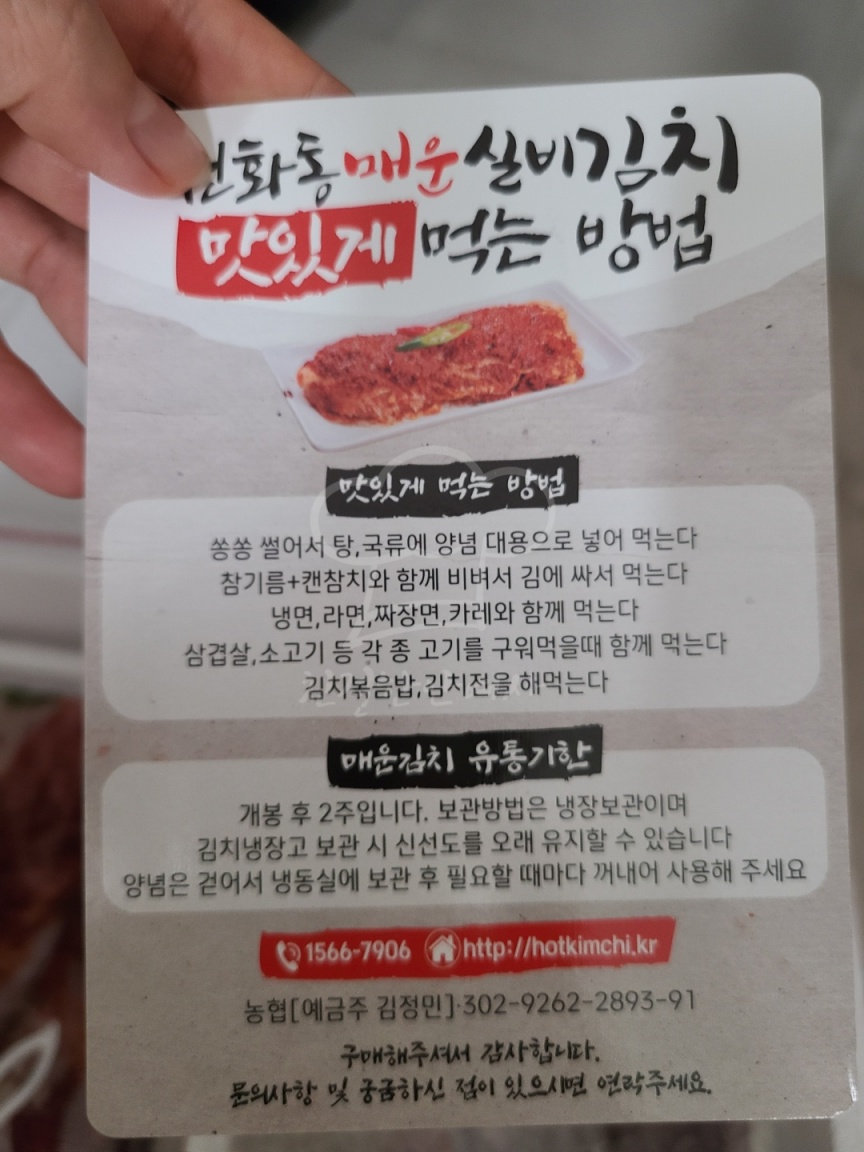 실비김치 먹는법과 유통기한이 적혀있는데