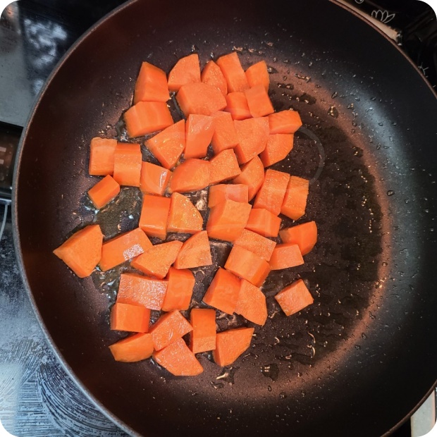 ▶ 일단 제일 딱딱한 당근부터 넣고 볶으신 후