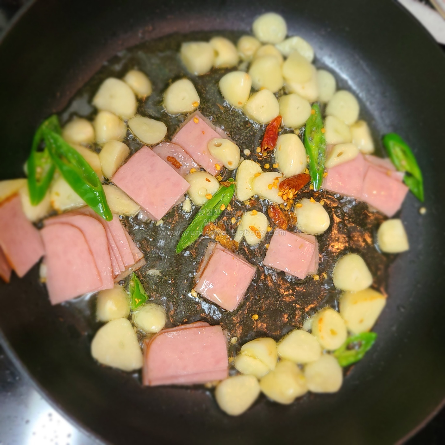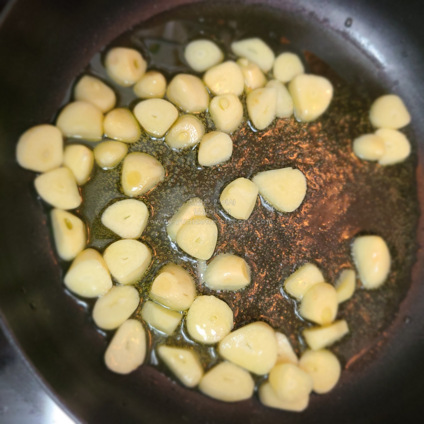 편썬 마늘을 익혀주어 마늘기름을 냅니다.