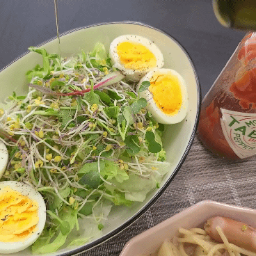 알리오올리오 위에 샐러드하고 남은 어린잎을
