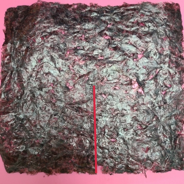 4. 김은 4등분으로 접어서 밑부분 한 군데만 잘라줍니다.(빨간 곳만 잘라주세요)