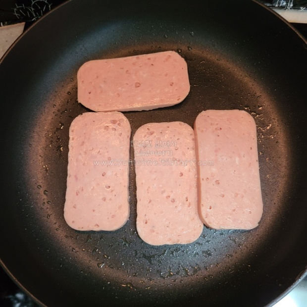 3. 계란은 지단을 부쳐주시고 런천미트는 알맞은 크기로 잘라주었어요.