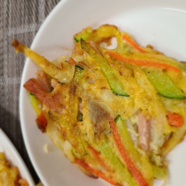 냉장고에 자투리 야채와 버섯으로 이렇게 전을 부쳐서 드셔 보세요.