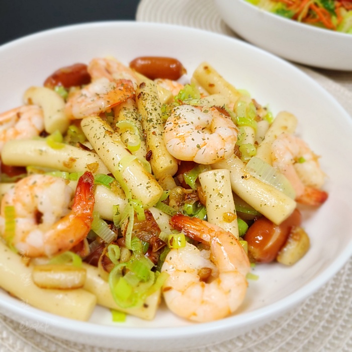 이렇게 떡과 새우가 어느정도 다 익으면 마지막으로 송송썬 대파를 넣고 볶아줍니다.