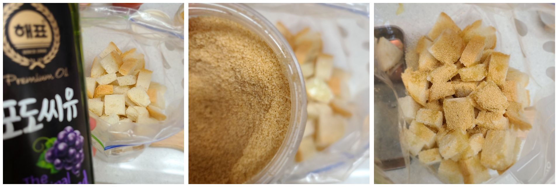이렇게 에어프라이어만 있다면 식빵 자투리를 이용해 이렇게 맛있는 간식을 만들 수 있답니다.
