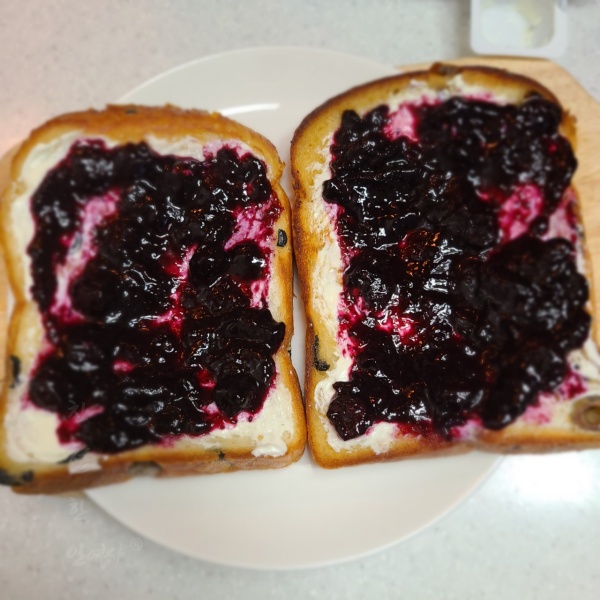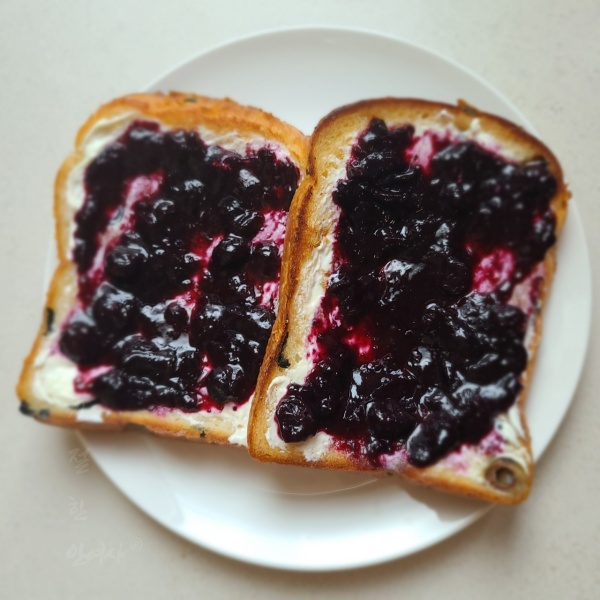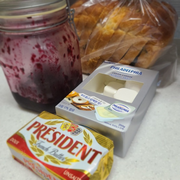 토스트는 샹달프 블루베리 잼과 마담로익 크림치즈를 이용을 했지만 저는 제가 만든 블루베리 콩포트와 필라델피아 크림치즈로 만들어 보았습니다.