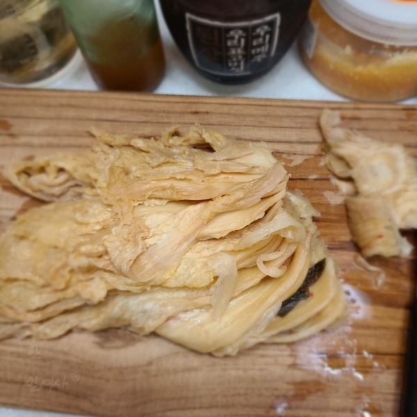 어릴 때부터 그렇게 먹어와서 그런지 저는 손으로 길게 찢어주었습니다.