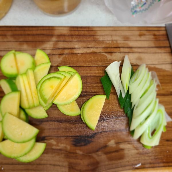 호박반개와 대파를 송송 썰어놓고