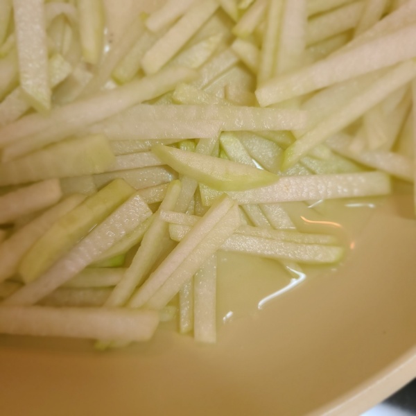 무를 채를 썰어 줍니다.