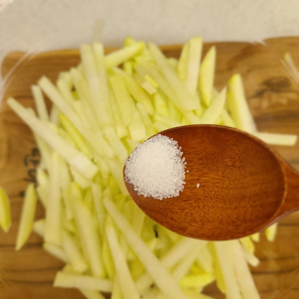 일단은 소금을 약간 넣고 10분간 무를 절여주는데요.