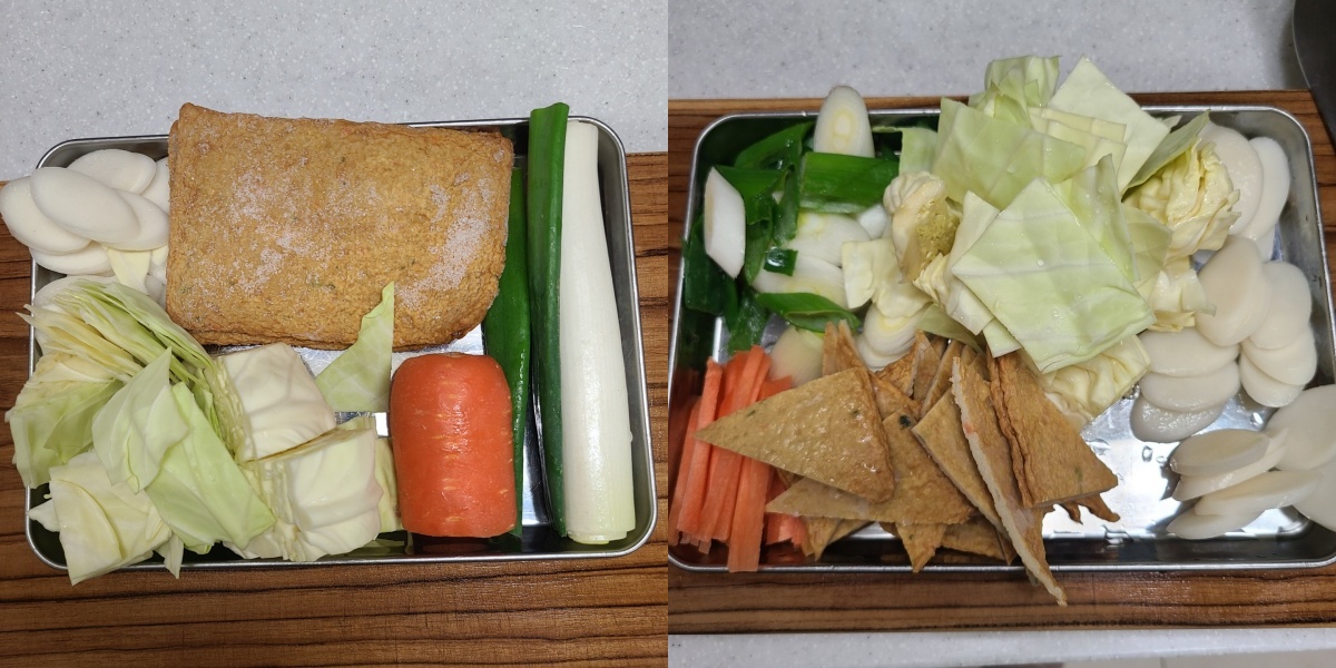 - 양배추, 어묵, 당근 약간 추가하였음