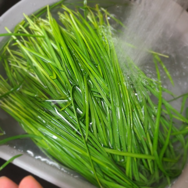 잘 씻어 놓은 부추이지만 여기에는 끔찍한 사실이 하나 있는데요.