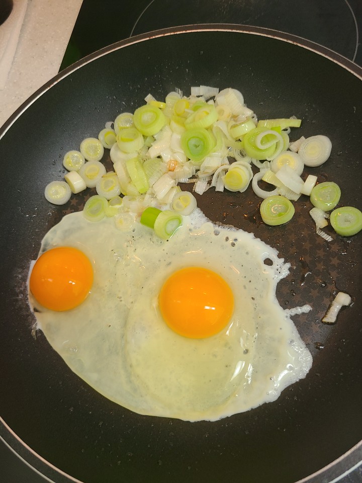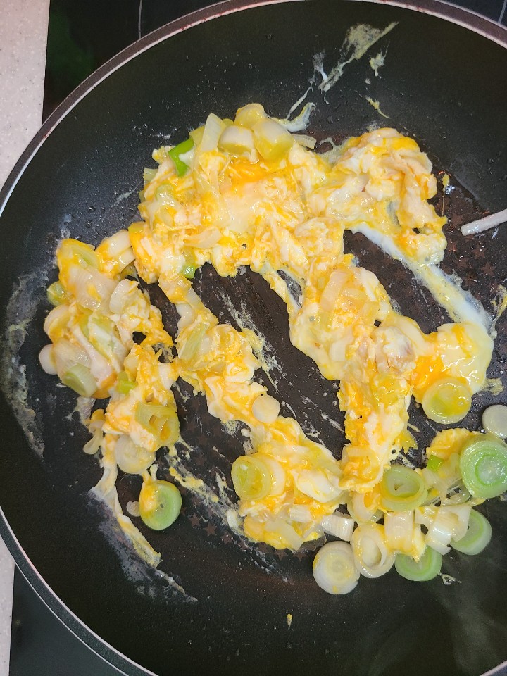 3. 파와 계란을 볶아 줍니다.