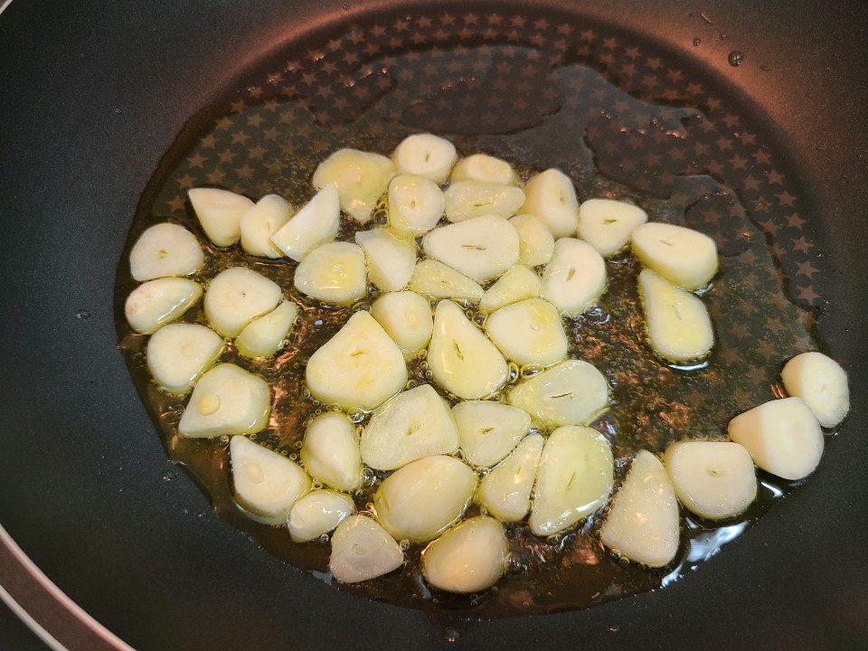 올리브유를 두른 팬에 마늘을 넣고