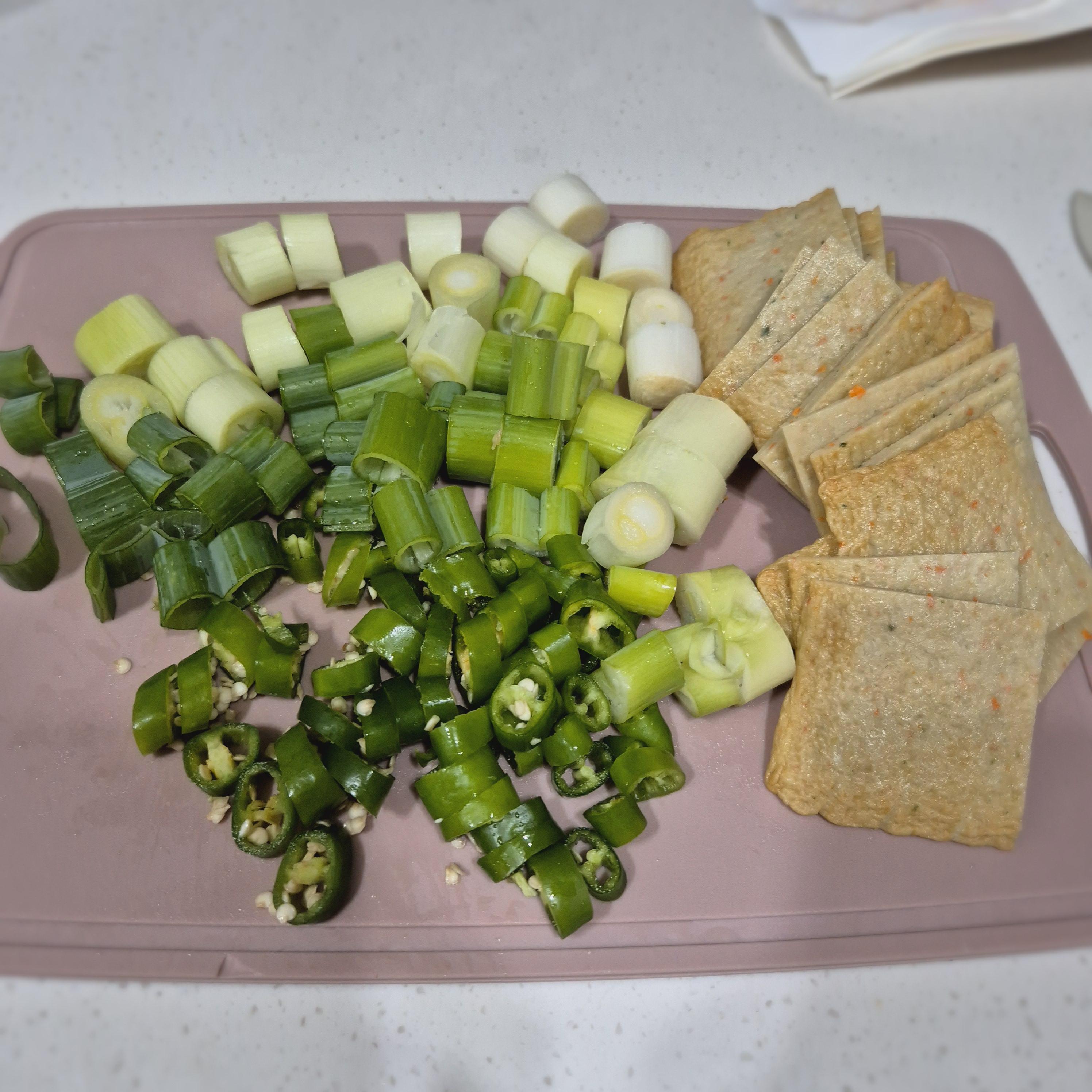 대파와 청양고추는 식감이 살도록 툭툭 썰어줍니다.