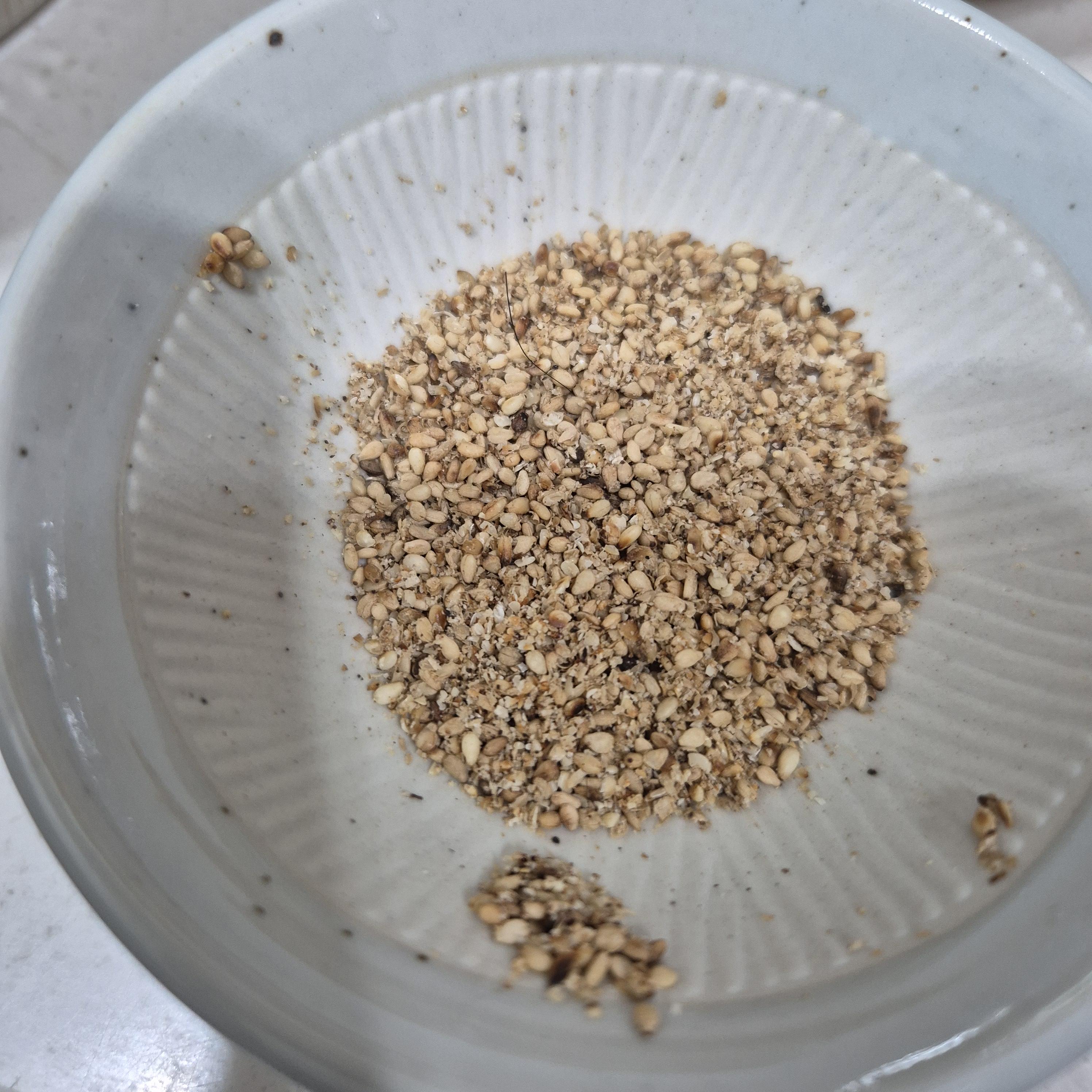 그리고 화룡점정 통깨를 고소하게 갈아서 준비합니다.