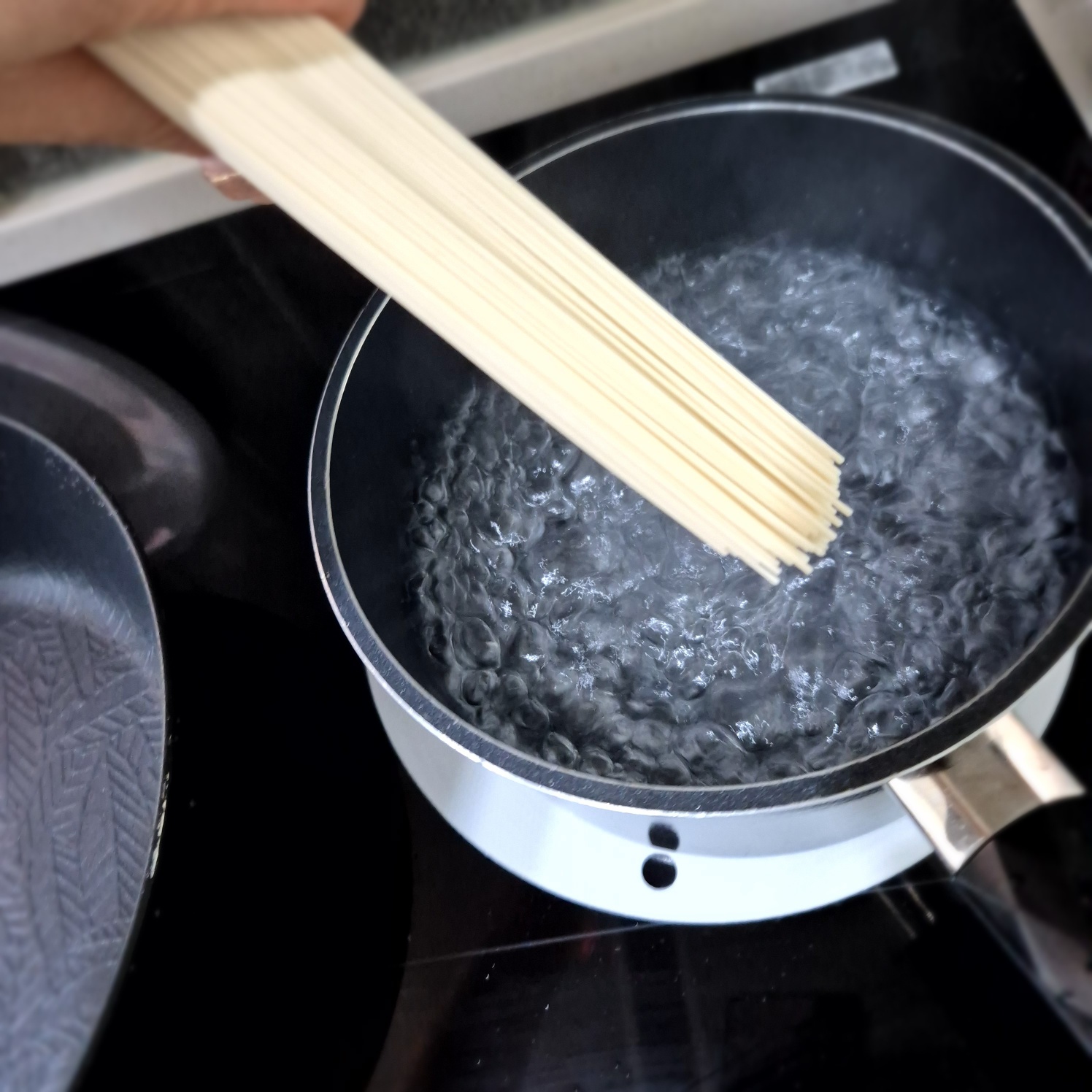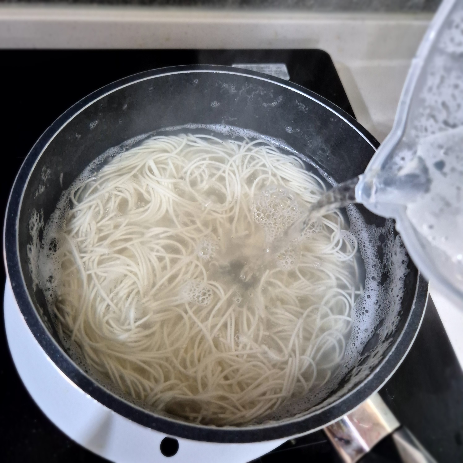 물이 끓으면 면을 넣고 끓어오르면 찬물을 부어주고 또다시 끓어오르면 찬물을 부어주는걸 3번 반복한 후 불을 끄시면 됩니다.