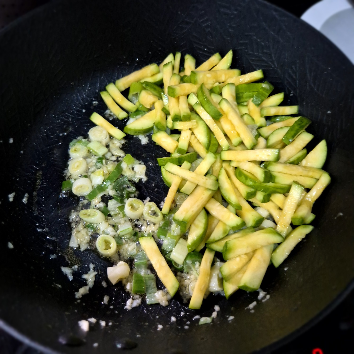 이제 애호박을 볶아줄 차례인데요.