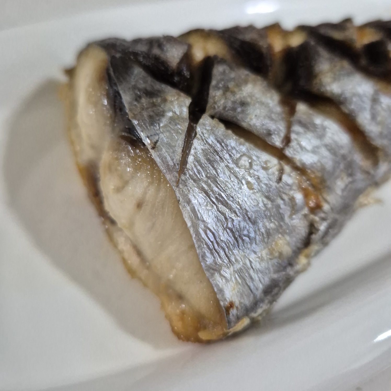 삼치 껍질 부분에 칼집을 내줍니다.