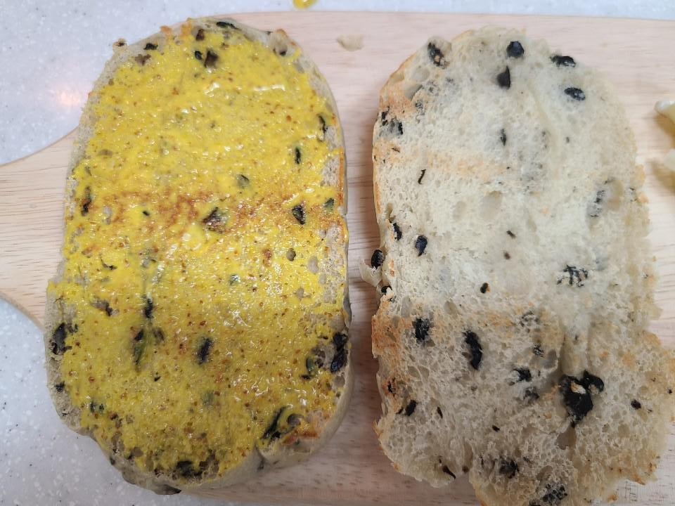 남은 올리브 치아바타 빵은 오븐에 구워서